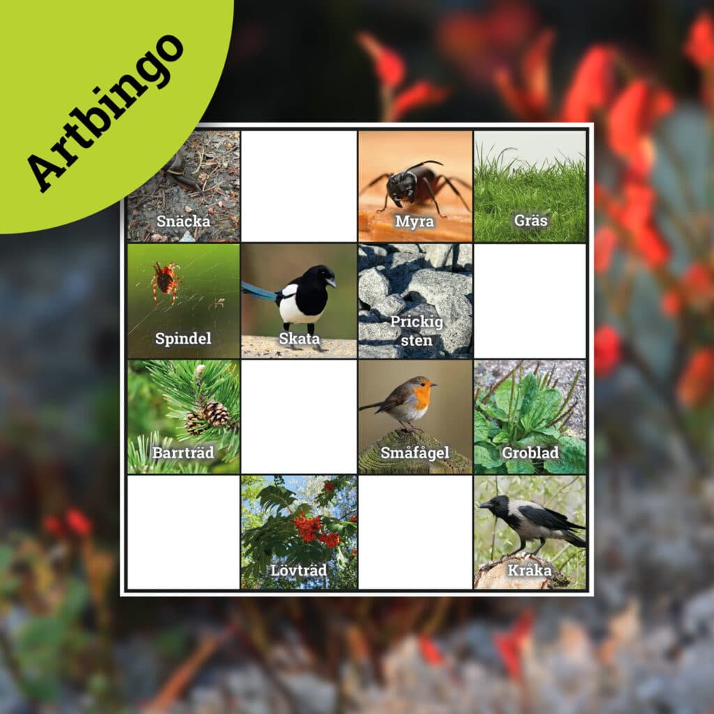 Artbingo Spela artbingo utomhus med dina medarbetare! Här kan ni skriva ut underlaget med färdiga bingobrickor och instruktioner Publicerad 29 jun, 2022Ladda ner som PDF
