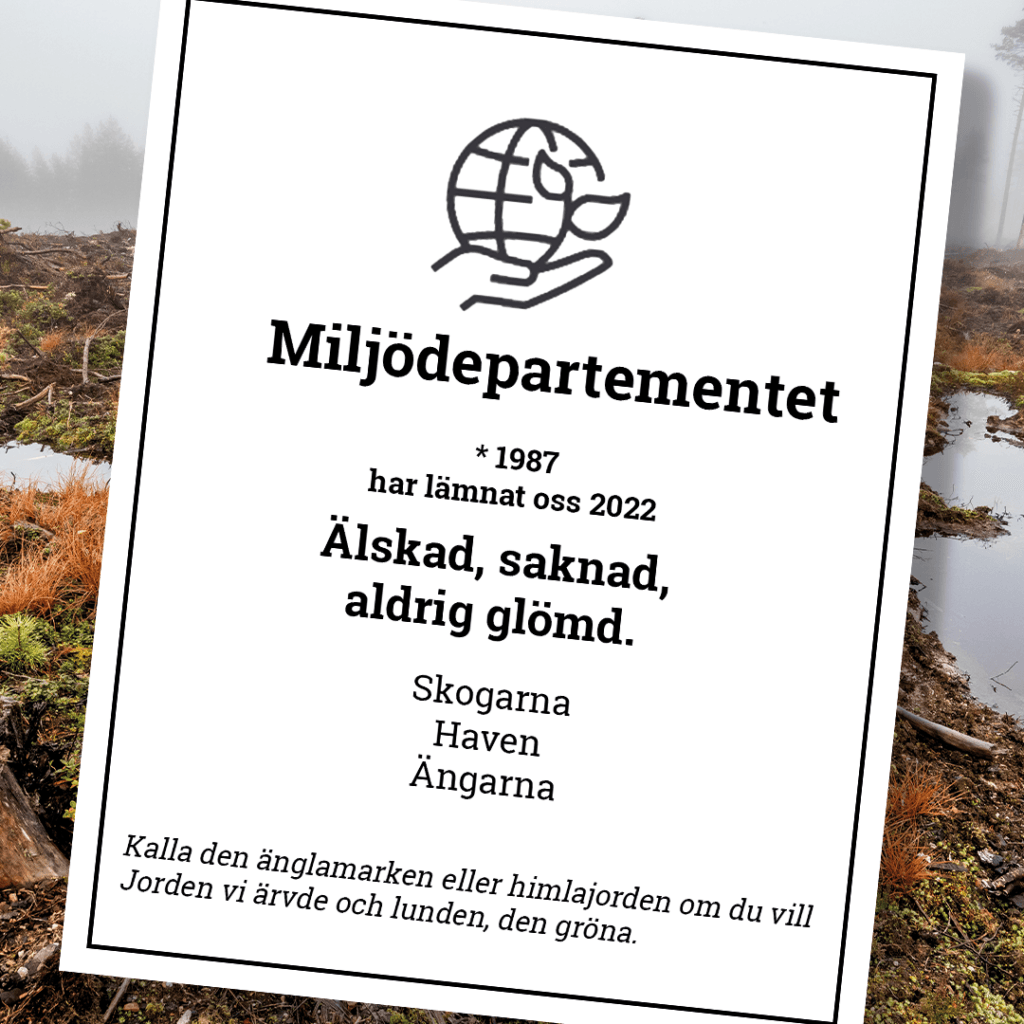 18 oktober 2022 presenterade statsminister Ulf Kristersson regeringsförklaringen och vilka som blir ministrar i den nya regeringen. Under presskonferensen meddelades att miljödepartementet läggs ner. Det är en tydlig och allvarlig signal om nedprioriteringen av miljöpolitiken.