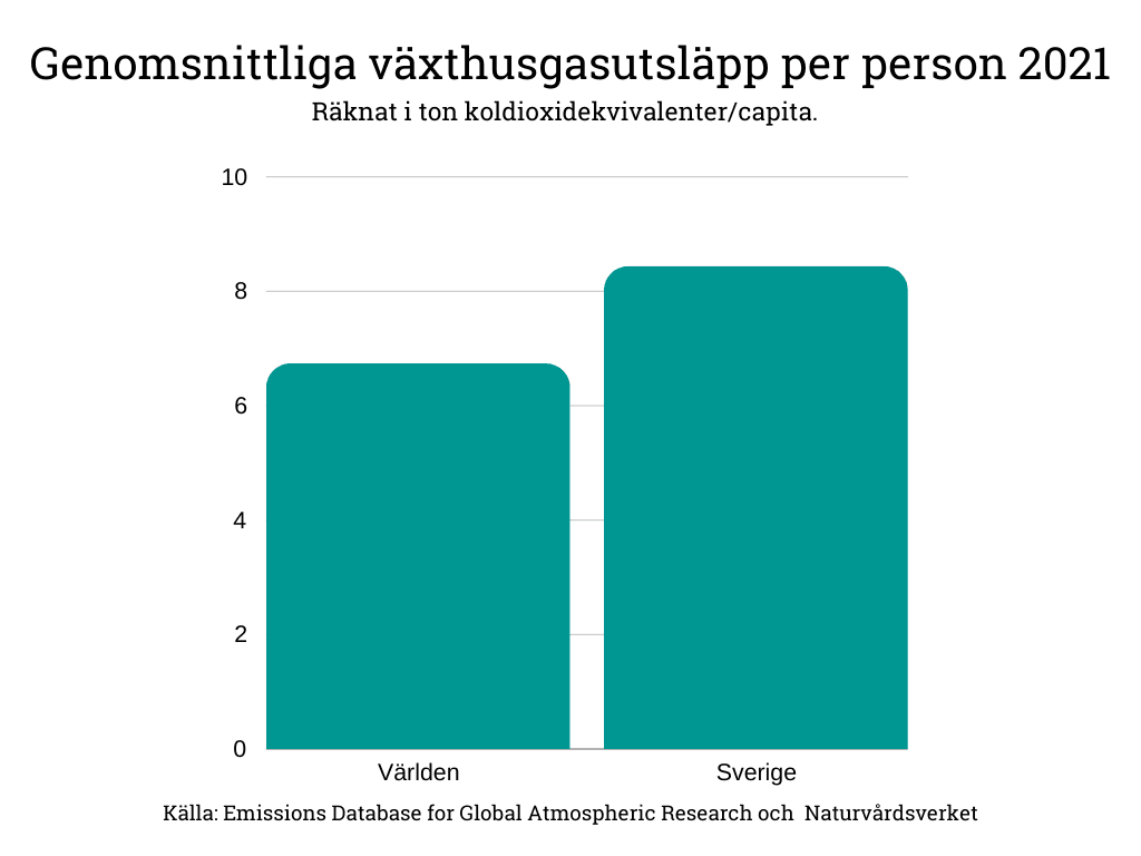 Det stämmer inte att enskilda länder som Sverige är betydelselösa för att begränsa den globala uppvärmningen. Sveriges utsläpp av växthusgaser per person ligger över det globala genomsnittet. En stor del av de varor som svenskar konsumerar produceras i andra länder, exempelvis Kina, vilket gör att de går att dölja i utsläppsstatistiken.