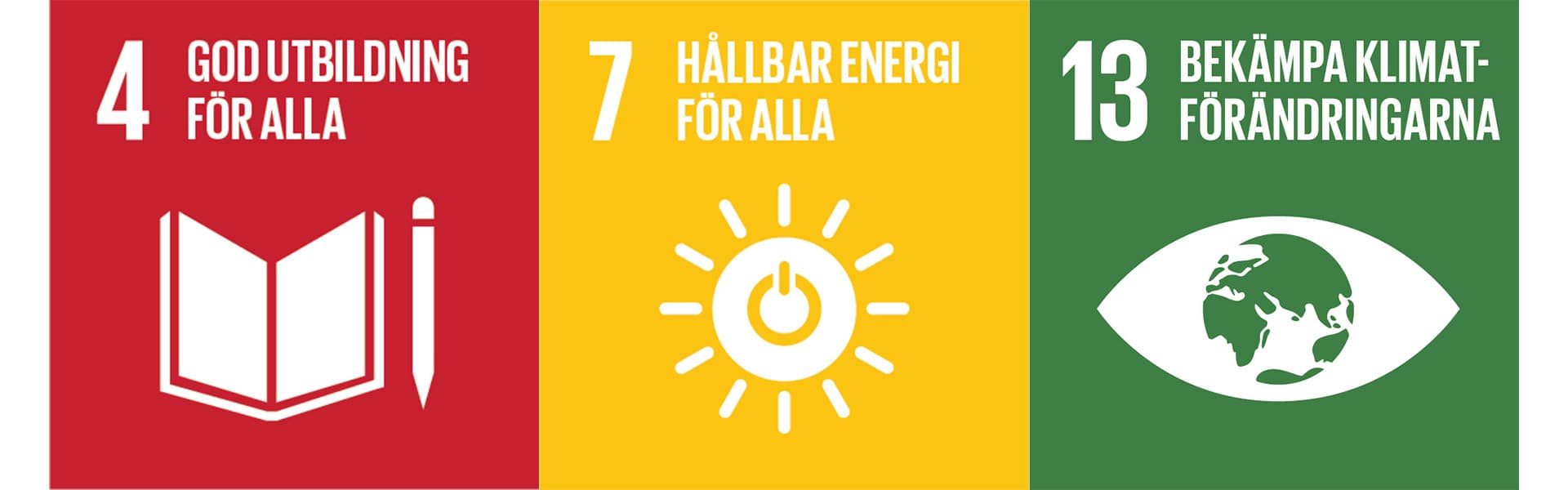 Projektet Solelever knyter an till de globala målen för hållbar utveckling, särskilt mål 4, mål 7 och mål 13.
